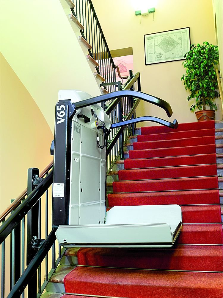 Presentamos el salvaescaleras de plataforma curva V65: seguro, versátil y diseñado para cualquier espacio