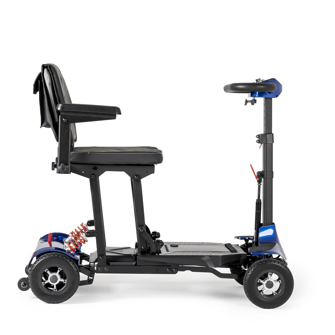 • Plegado manual sencillo: Permite que la scooter quede de pie al plegarse, facilitando su manejo sin necesidad de agacharse.